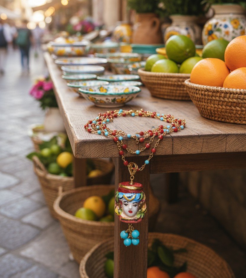 COLLAR FILIPPA FEDERICA ROJA CON CASCADA AZUL