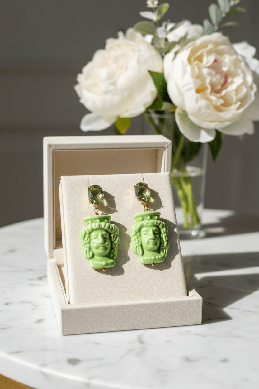 Cada pieza es única por lo que pueden existir variaciones de color y tamaño. Todas las piezas están realizadas a mano por artesanos sicilianos Medida del pendiente: 6 cm de largo1 in stock