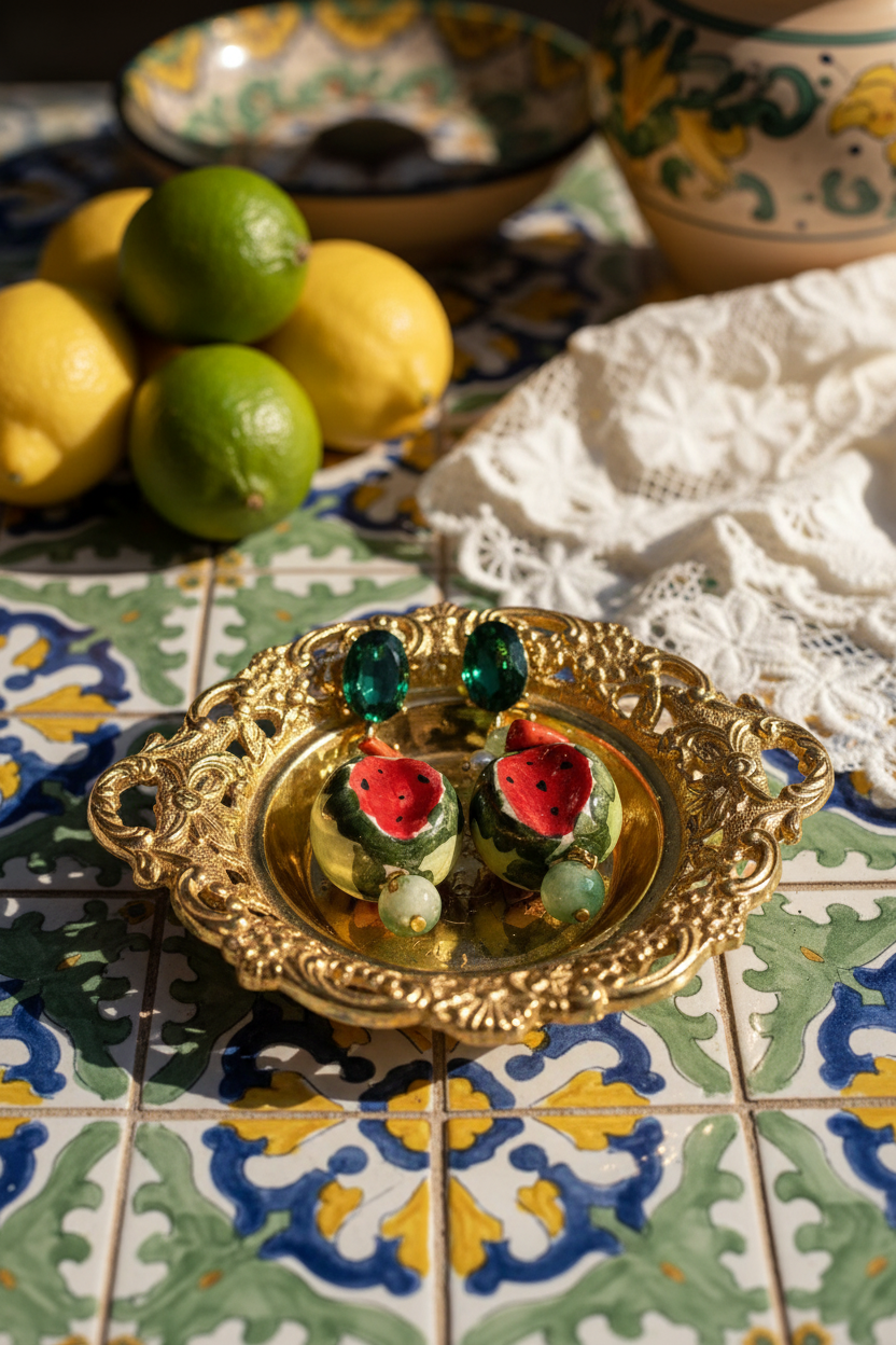 Miden aproximadamente 6 cm de largo. En la terminación tienen dos cristales verde. Todos nuestros productos están realizados por artesanos sicilianos. Pueden existir variaciones de forma, color y tamaño en todas las piezasSecure payments.