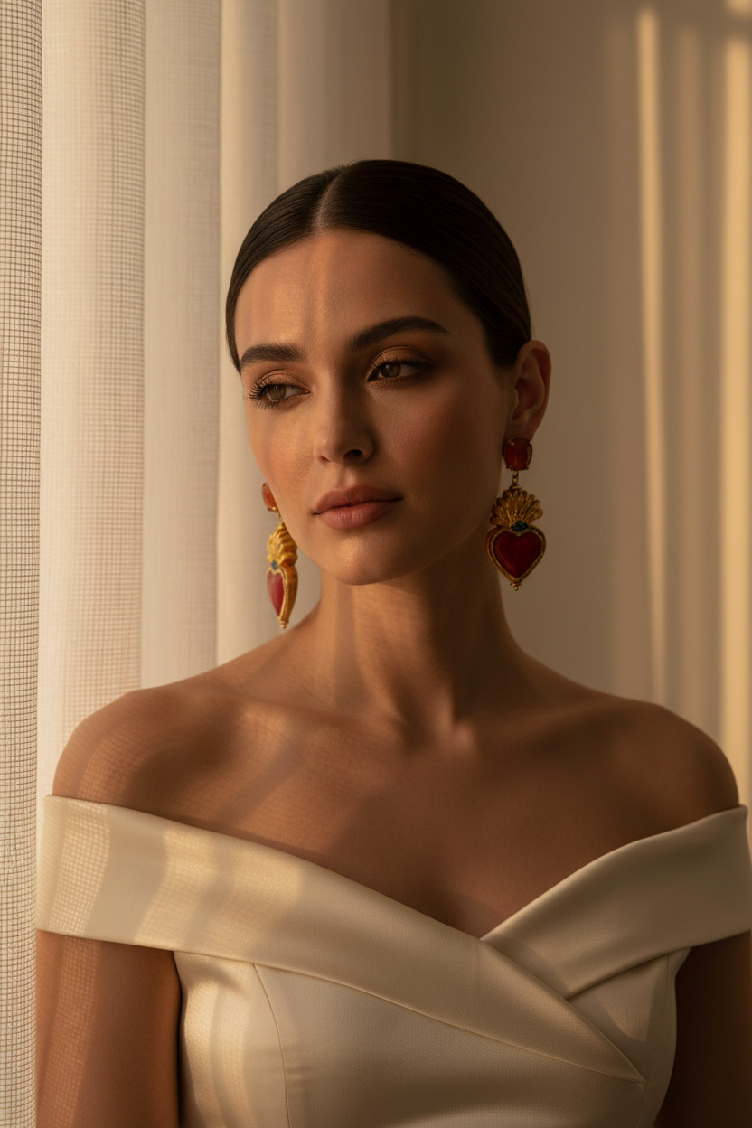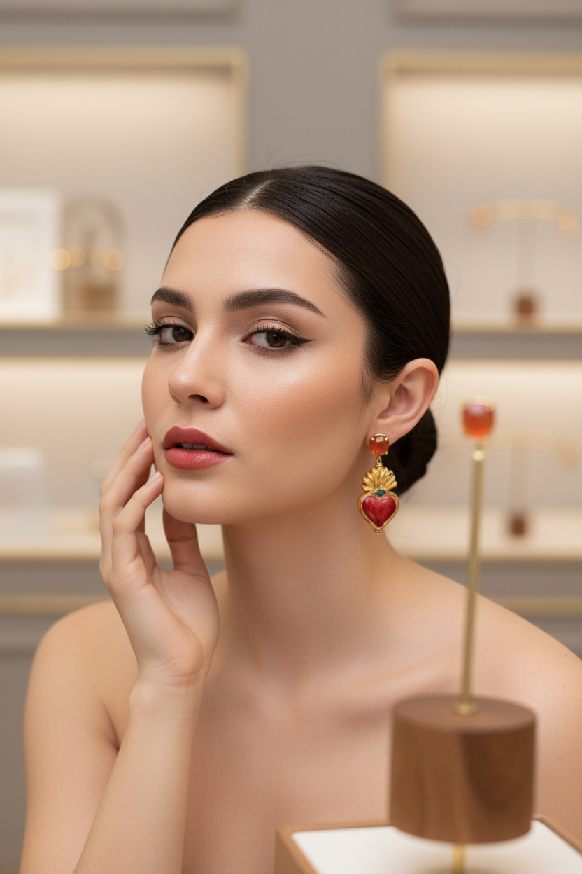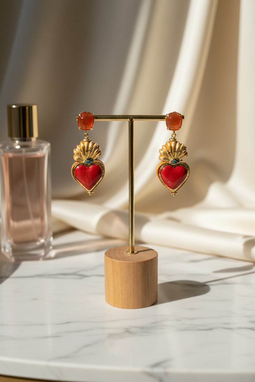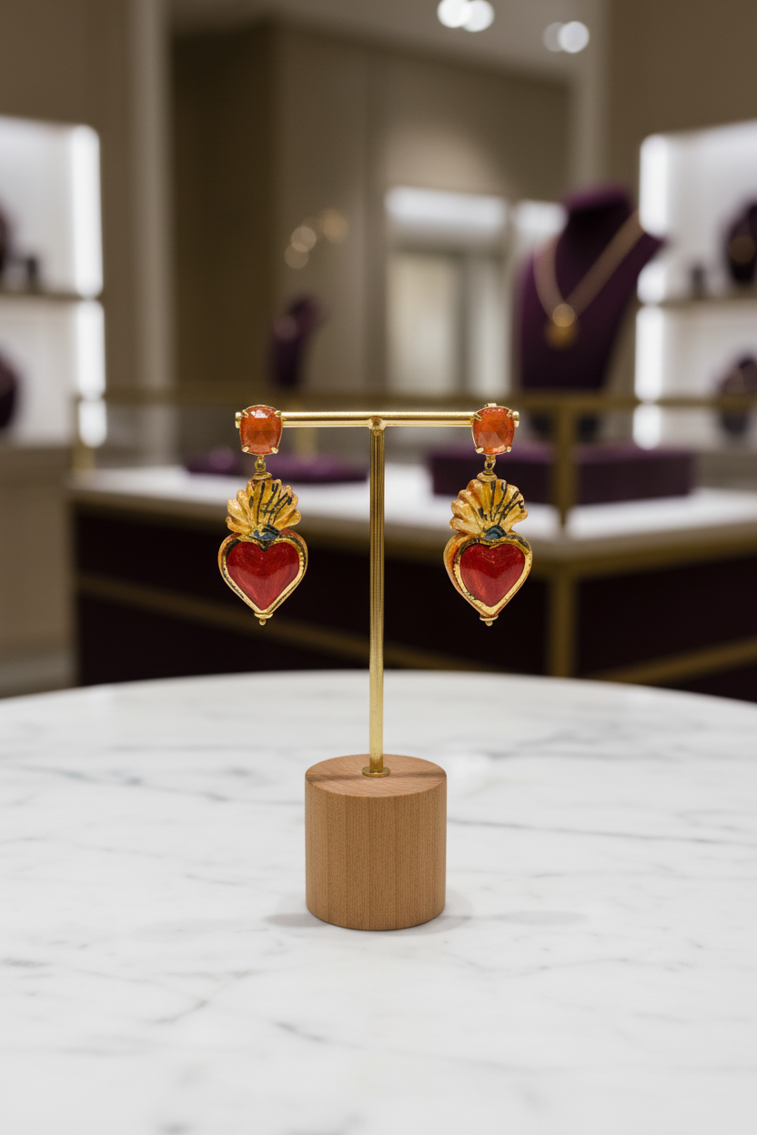 Pendientes de cerámica realizados por artesanos de Caltagirone. Con la forma del Sagrado Corazón italiano y de color rojo, tienen un cierre redondo que se ajusta perfectamente. Miden aproximadamente 6 cm de largo por 2,5 cm de ancho. Puede haber variaciones de tamaño y color puesto que cada pieza está hecha a mano y es única.