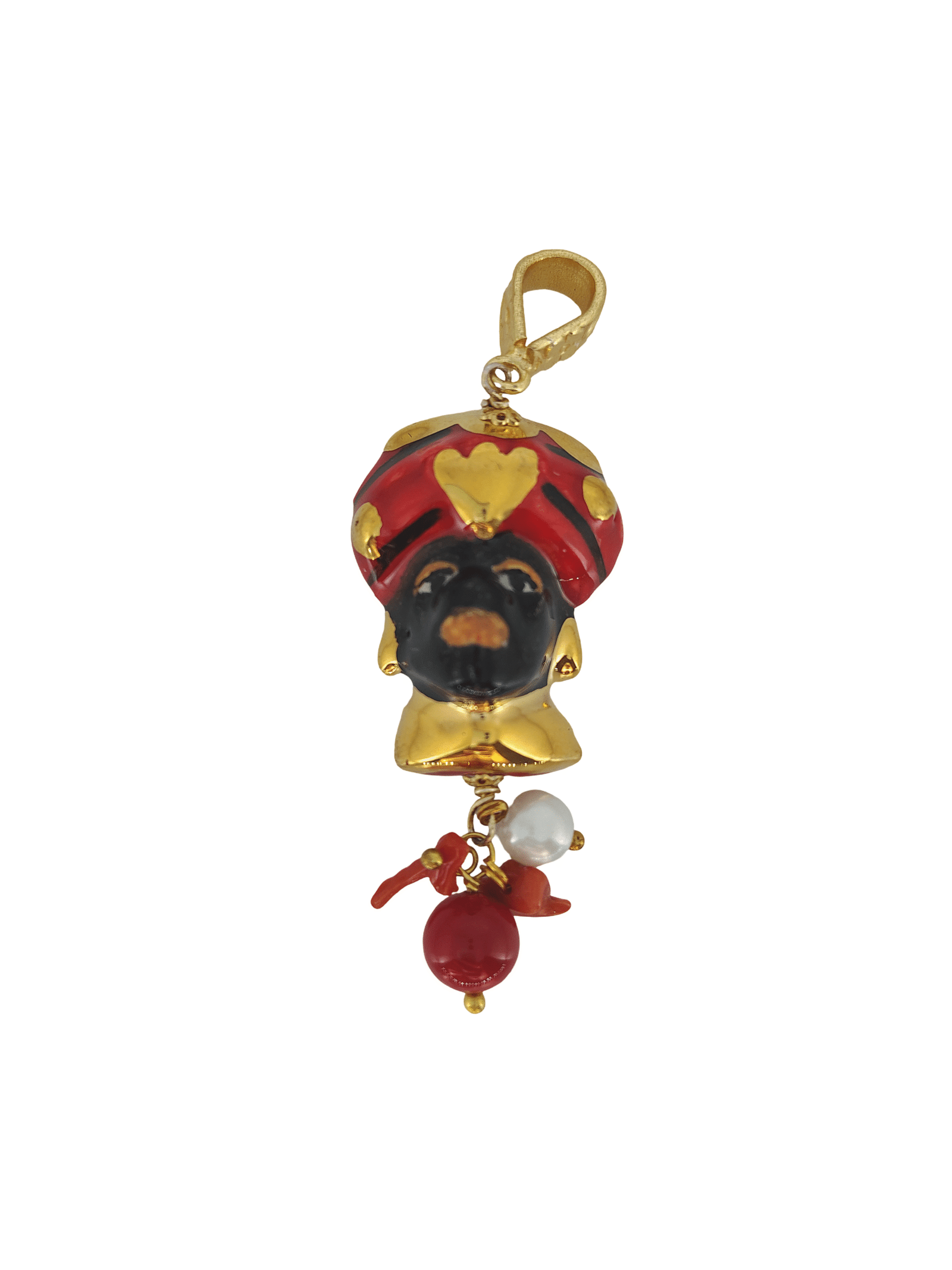 Charm de Moretti Siciliano. Es de pequeño tamaño. Realizado por artesanos de Caltagirone. Puede llevarse largo o corto. Ideal para cadena de cuero, chocker o cadena de piedras. Mide aproximadamente 6 cm de largo por 3 cm de ancho. Puede haber variaciones de tamaño debido a que cada pieza es única.